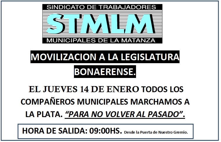 02/01/2016 | Marchamos Todos Juntos a la Legislatura Bonaerense.El Jueves 14 de Enero Decimos todos Presente..