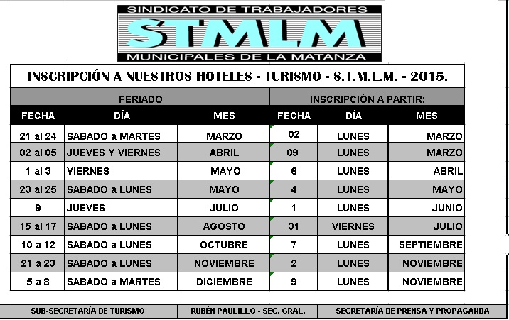 09/03/2015 | Cronograma de Feriados - Hoteles del S.T.M.L.M.Ponemos a Disposición el Cronograma de Feriados 2015..