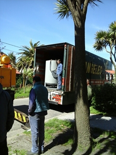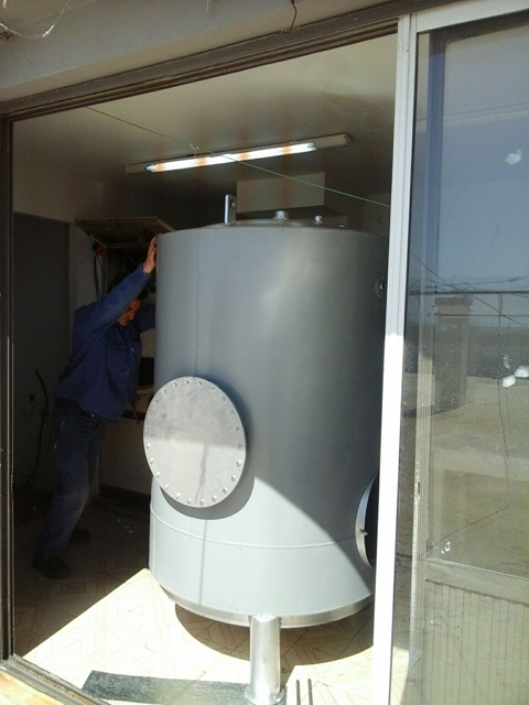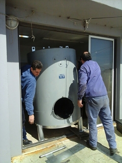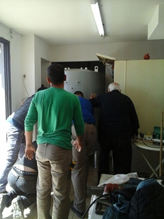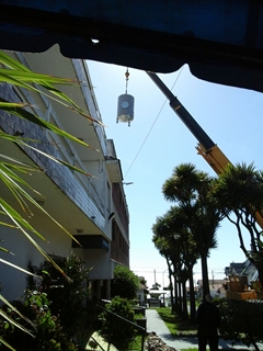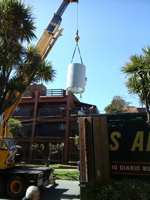 Con un gran operativo, y hasta la utilización de una pluma hidráulica, se realizó el recambio de la caldera del hotel en medio de un trabajo arduo y en conjunto con todos los encargados de la obra.