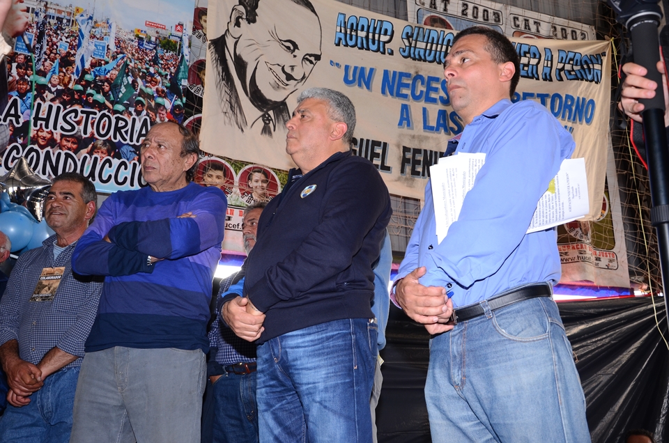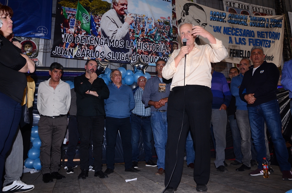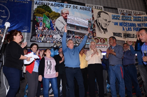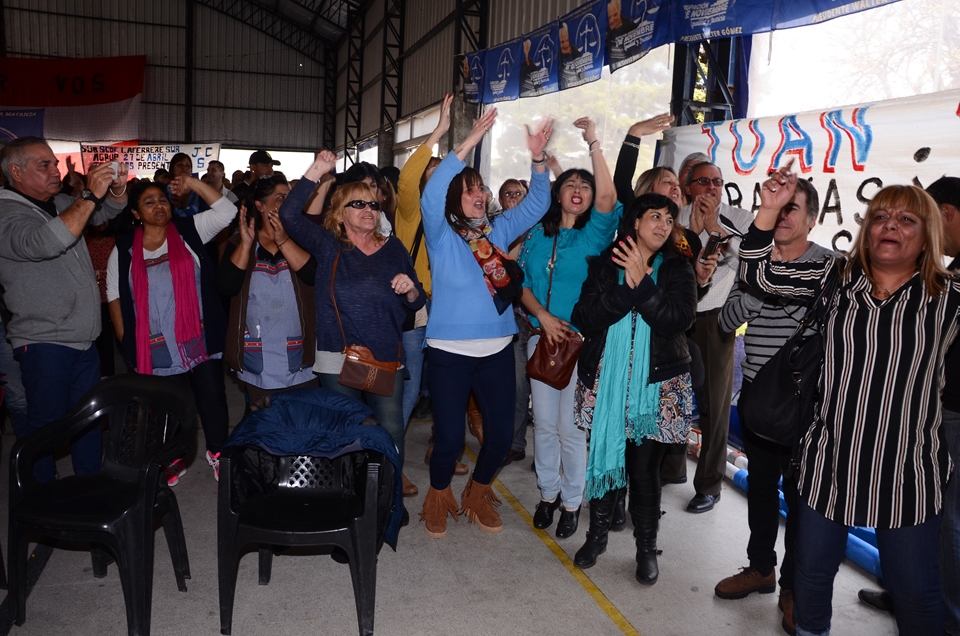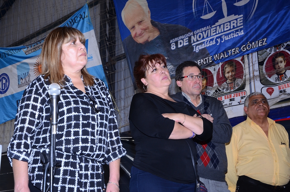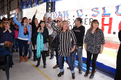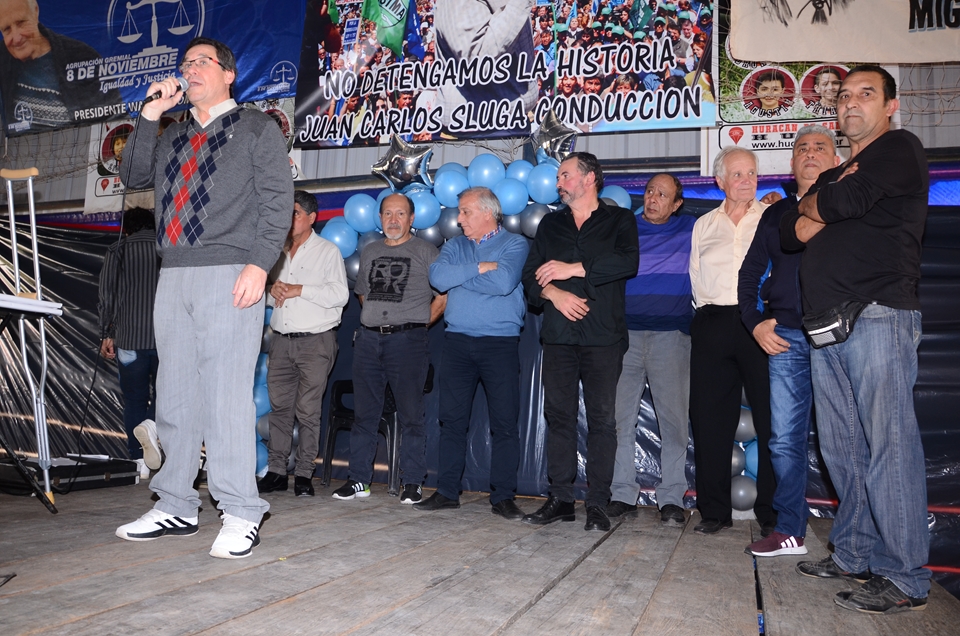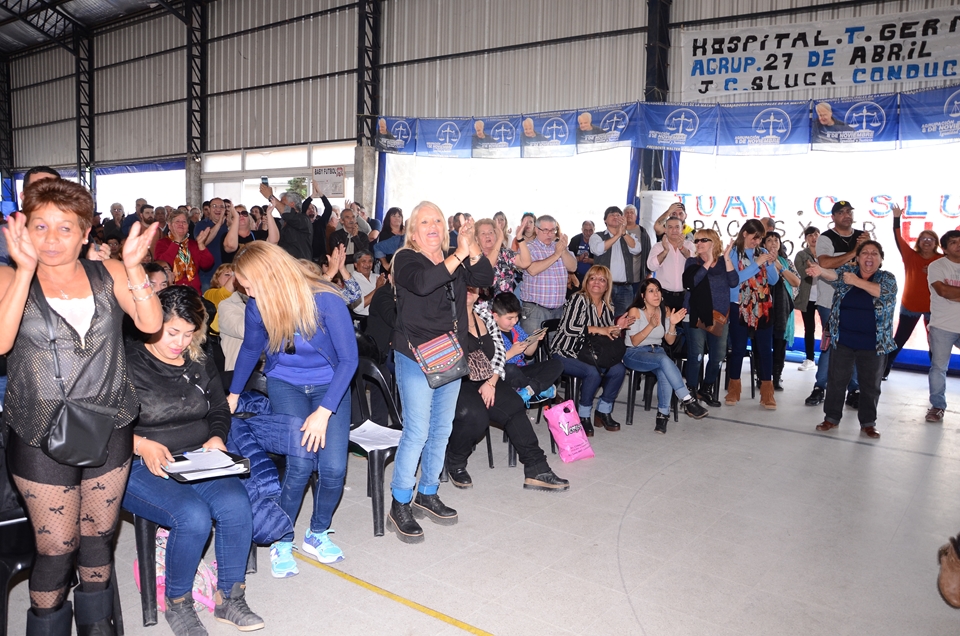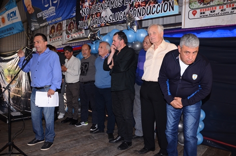 Secretario de Cultura Héctor Jaimes, Previsión Social Ricardo Candoti, Obra Social María E. Alfano, Sec. de Prensa Daniel Troncoso, Sec. de Finanzas Juan C. Mancuso, Sec. de Administración Ricardo Tello, Sec. Gremial Alberto Squiavone, Sec. de Organización Rubén Paulillo, Sec. Adjunta José Saglimbeni, y Sec. General Juan Carlos Sluga.